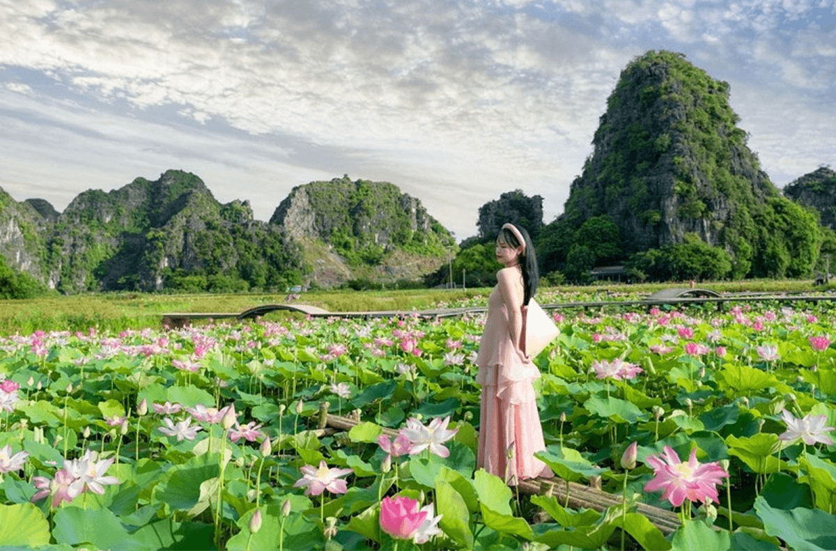 Bước sang tháng 7 đến tháng 9, thời tiết Ninh Bình bắt đầu dịu mát, mang hơi thở giao mùa giữa hạ và thu. Cả vùng Cố đô được điểm tô bởi sắc hồng của hoa sen, tím của hoa súng trên những đầm nước tĩnh lặng khung cảnh lãng mạn và yên bình đến khó tả.